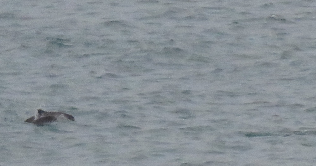 The weather has moved on with a bit more wind from the SE making the outlying sea a bit rougher than in recent days although the waters of our lee-shore were relatively calm. We didn't see the Risso's but we probably would not have seen them yesterday in similar conditions..People often struggle trying to see the porp's at Strumble, my advice is watch for birds circling and look beneath most often there will be a porpoise below them. In the winter its mainly larger gulls although today there were also half a dozen gannets feeding with the porp's their excited Grna Grna Grna calls clearly audible to us half a mile away. Leo the dog is the latest Team Sea Trust recruit and a valuable addition. He probably knows more about porpoises than many so called experts.