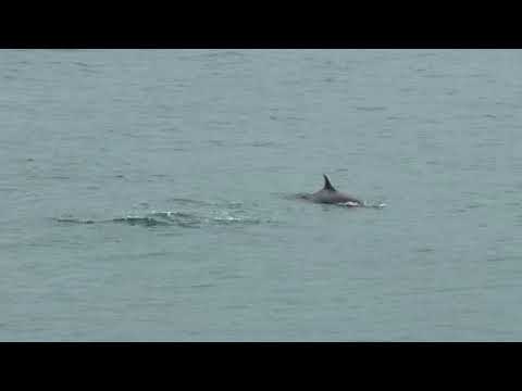 Having left Strumble I returned to Goodwick and headed to the flagpoles to see what birds might be on the shoreline there. Nothing much of interest so I returned to the car and looking out toward the north breakwater I spotted several large splashes. Only dolphins could do that I thought so off I went. I was right. There were five there, a few adults and two youngsters. Since I've had my new camera kit I've been longing to get contact with a more active group rather than the one's and two's weve seen of late.