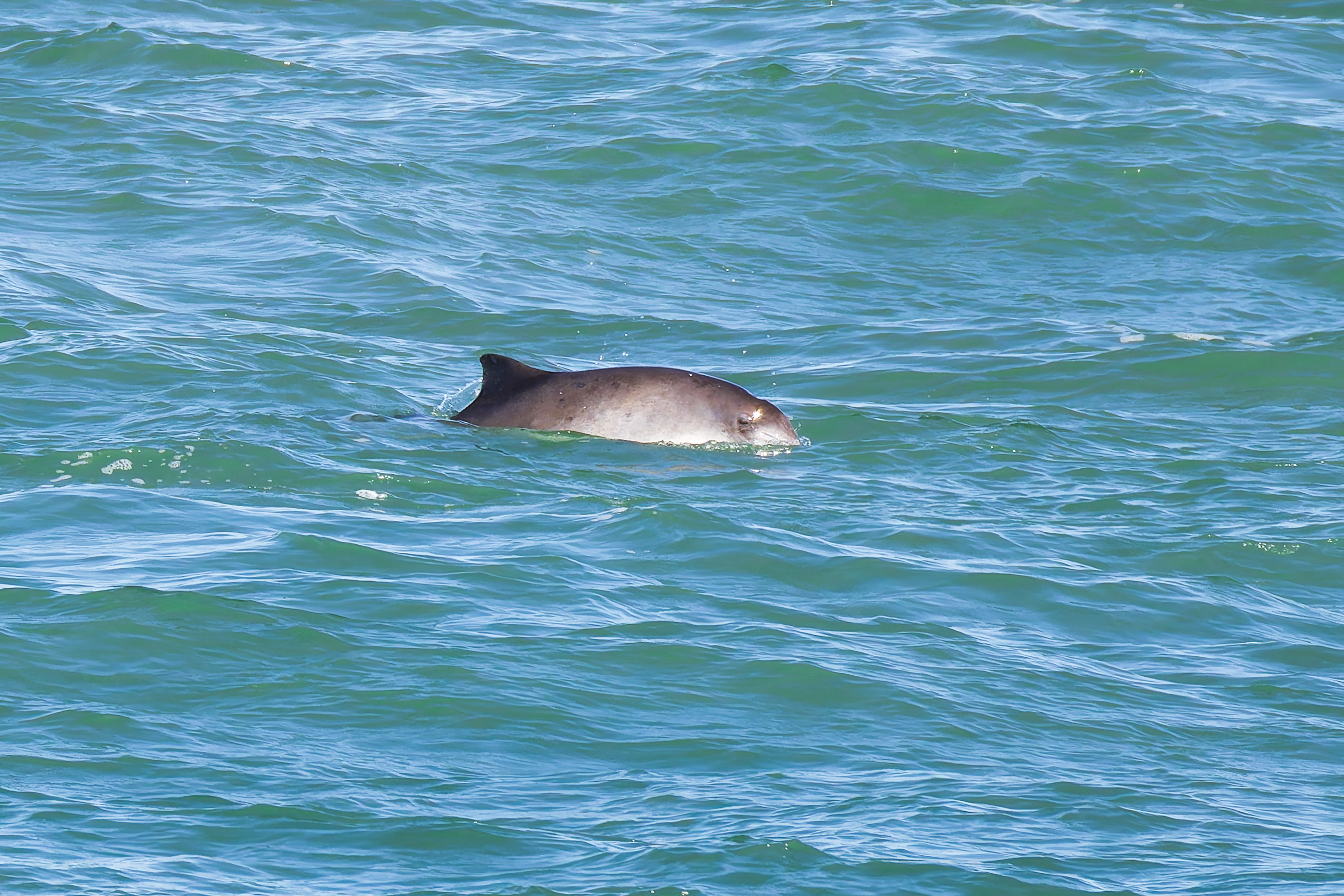 Another beautiful morning at Strumble today. As I arrived there were Commons distant in the remains of the flood tide tide race with several Gannets in attendance overhead. There were also two porpoise well off to the NE beyond mackerel point. Things were quiet then until the ebb flow got underway and the porpoise started moving in. Things were going along nicely with steady sightings in the tide race giving me a few decent shots. However, a single common dolphin moved in and the porpoise melted away until a half hour later the common moved off and a couple of porpoise showed again. By this time the tide had dropped significantly and all the action was now down well beyond the lighthouse and out of my range.